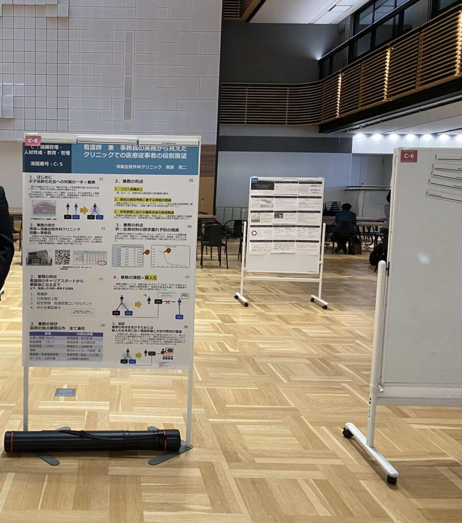 日本医療・病院管理学会学術総会2023で発表しました ブログ 2026.01.16 2023.11.06 工学院大学で開かれた2023年度日本医療・病院管理学会学術集会で発表させて頂きました。 東京・新宿の工学院大学にて開催された全国の演題が集まる 第61回・日本医療・病院管理学会学術集会に発表者として参加させて頂きました。 主旨は、 クリニックの看護師が様々な仕事が出来るようになって経済的になった というもの。 少子高齢化で働き手が減って、患者さんが増える社会で、 労働力を確保するための一手を発表として選んで頂きました。